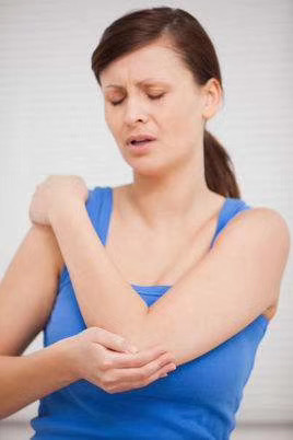 ?将你的左手背到身后去摸右肩胛骨,疼不?